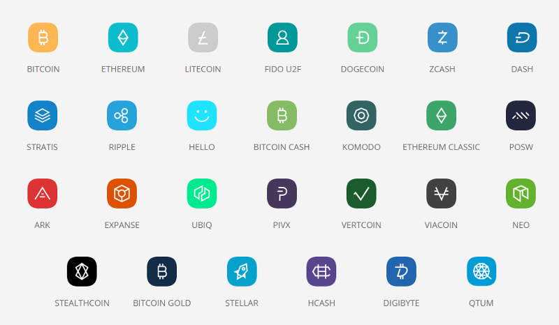 4.Ledger Wallet- 真的摸得到的實體錢包,這款錢包是目前市場上最多人用的實體錢包,其支援的幣種相當豐富,可以參見下下圖,官方聲稱透過特殊專利加密辦法讓虛擬資產可以更安全的被保管,如果錢包壞了丟了只要私鑰還在,虛擬資產依舊不會消失,但購買時千萬要注意盒子包裝是否完整,不要買到二手貨。