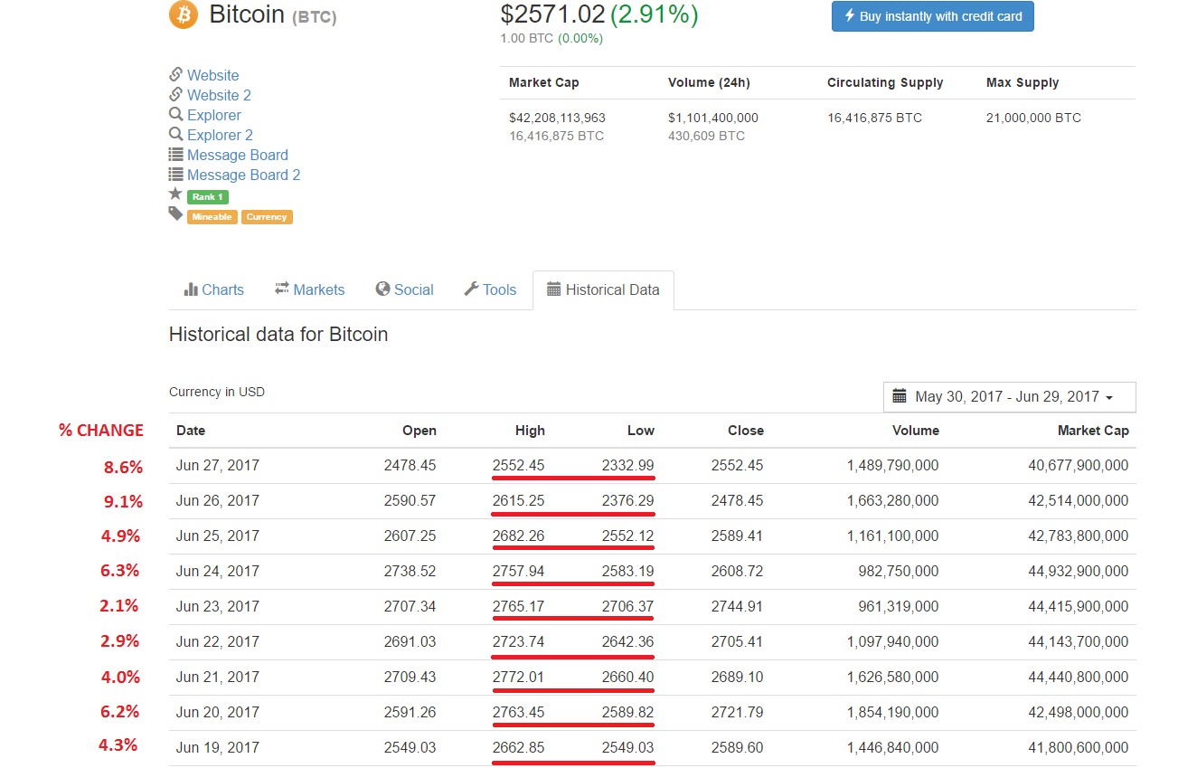 You can see in the image that I have provided that Bitcoin can be very volatile and ranges from 2.1% - 9.1% per day. Now, of course, the auto-bot might not hit the entire range that is given on a daily bases, but let's just say it does 50% of that consistently every day and earning an average of 1% ~ 4% per day. This shows there are good days and bad days, but on average let's say that the bot earns 2% per day which is the in-between 1% ~ 4%. This shows that Bitconnect can pay out 1% while keeping 1% which is a reasonable conservative estimate. Also, you can also see on the chart below that the good days occur much more than the bad days so they are likely retaining more than my conservative estimations.