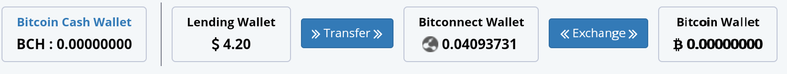 Sind die Bitcoin erst einmal in der Wallet auf Bitconnect, so kann man sie dann in der Exchange gegen Bitconnect Coin eintauschen. Nachdem das geschehen ist, erscheinen die BCC in der BCC Wallet. Die dort enthaltenen Coins können im Lending Program investiert werden.