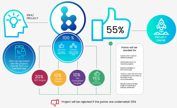 Платформа предлагает стартапам в этих менее «финансируемых» отраслях шанс и получить их идею, рассмотренную TeamBit, экспертами и самим сообществом инвесторов. Каждый токен продаж проходит через систему платформы. Таким образом, уменьшается риск кражи токенов с определенными мерами безопасности при настройке привилегированных учетных записей пользователей. Риск мошенничества будет снижен, путем проведения уникальной проверки, который состоит из юристов, налоговых консультантов, специалистов и пользователей сообщества, все объединяющие силы до принятия проекта.