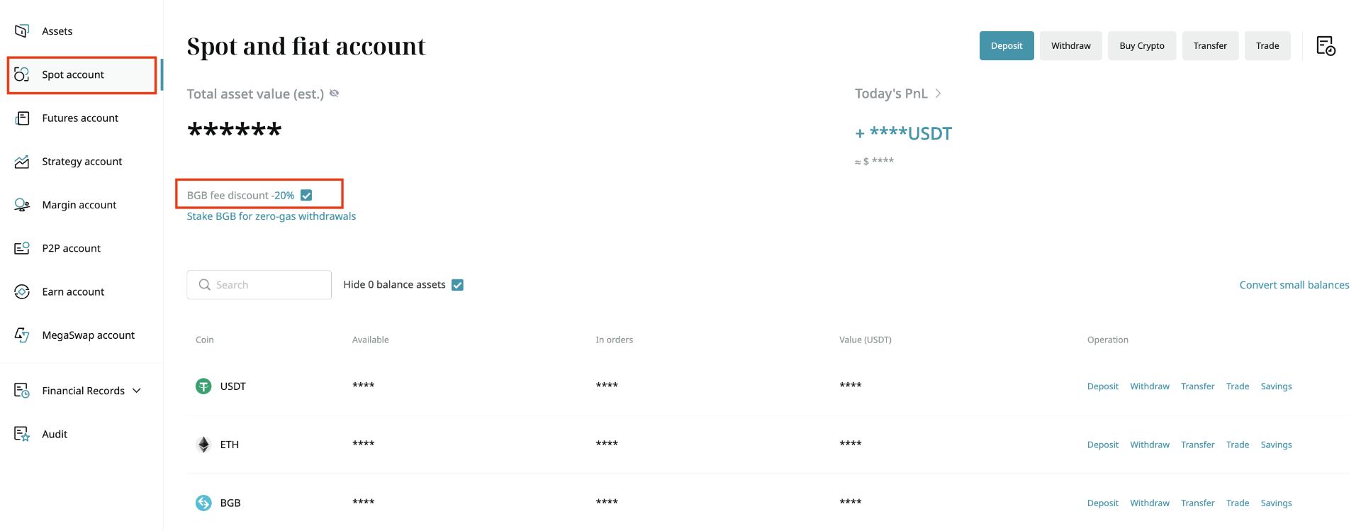 You can turn on this function by heading to ‘Asset’, and hitting on the ‘BGB fee discount’ check box, under the ‘Spot account’ tab.