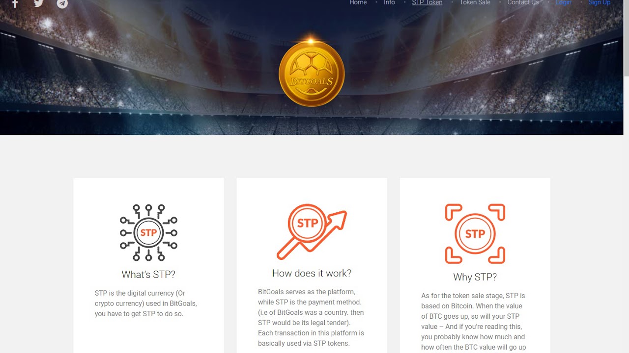 - The ticker for Bitgoals token is STP and it is the official currency of the Bitgoals protocol.