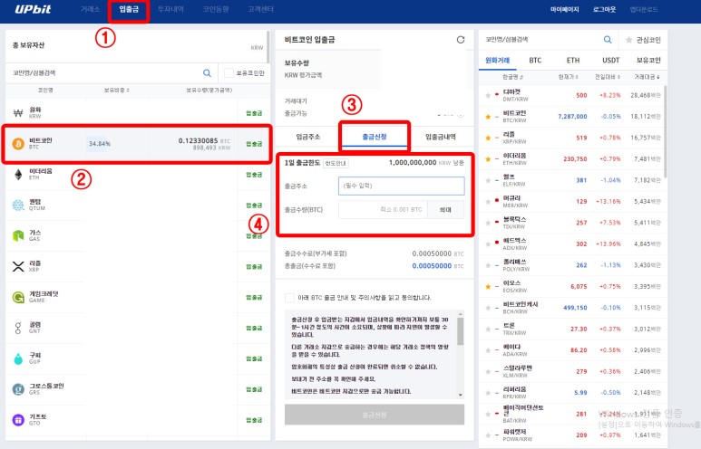 4. 비트코인이 있는 거래소에서, 비트코인을 저 입금 주소로 송금한다.