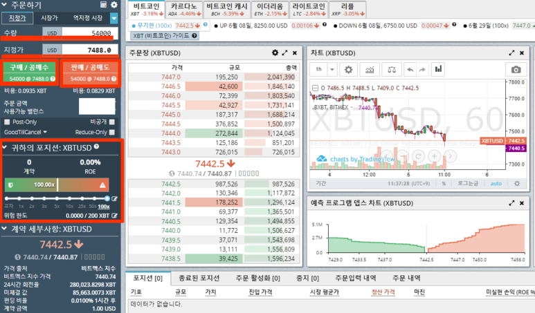 100배는 공매수 공매도 칠때 필요수량이 많이 들진 않지만 청산당할 확률이 높습니다.