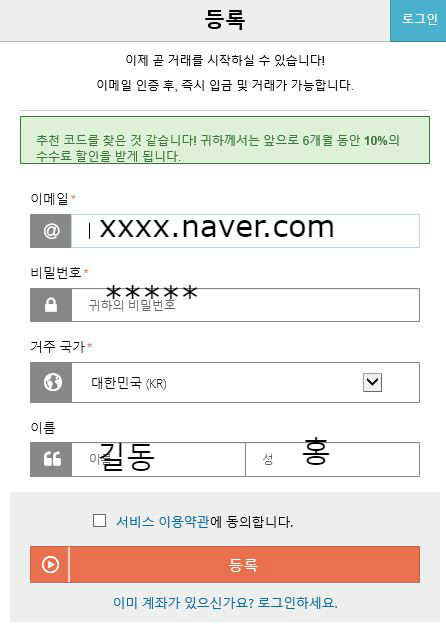 수수료값을 무시 못하니까 꼭 추천 코드를 통해 가입하셔서 6개월간 수수료 혜택 받으셔야