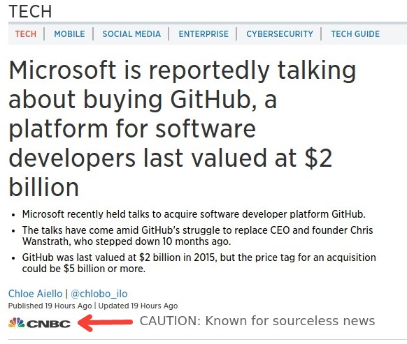 Let's hope that this is just another baseless news item. Time will tell. If the author of blue screens of death actually does buy up our main source of stable software, I for one have done my last git pull or git clone