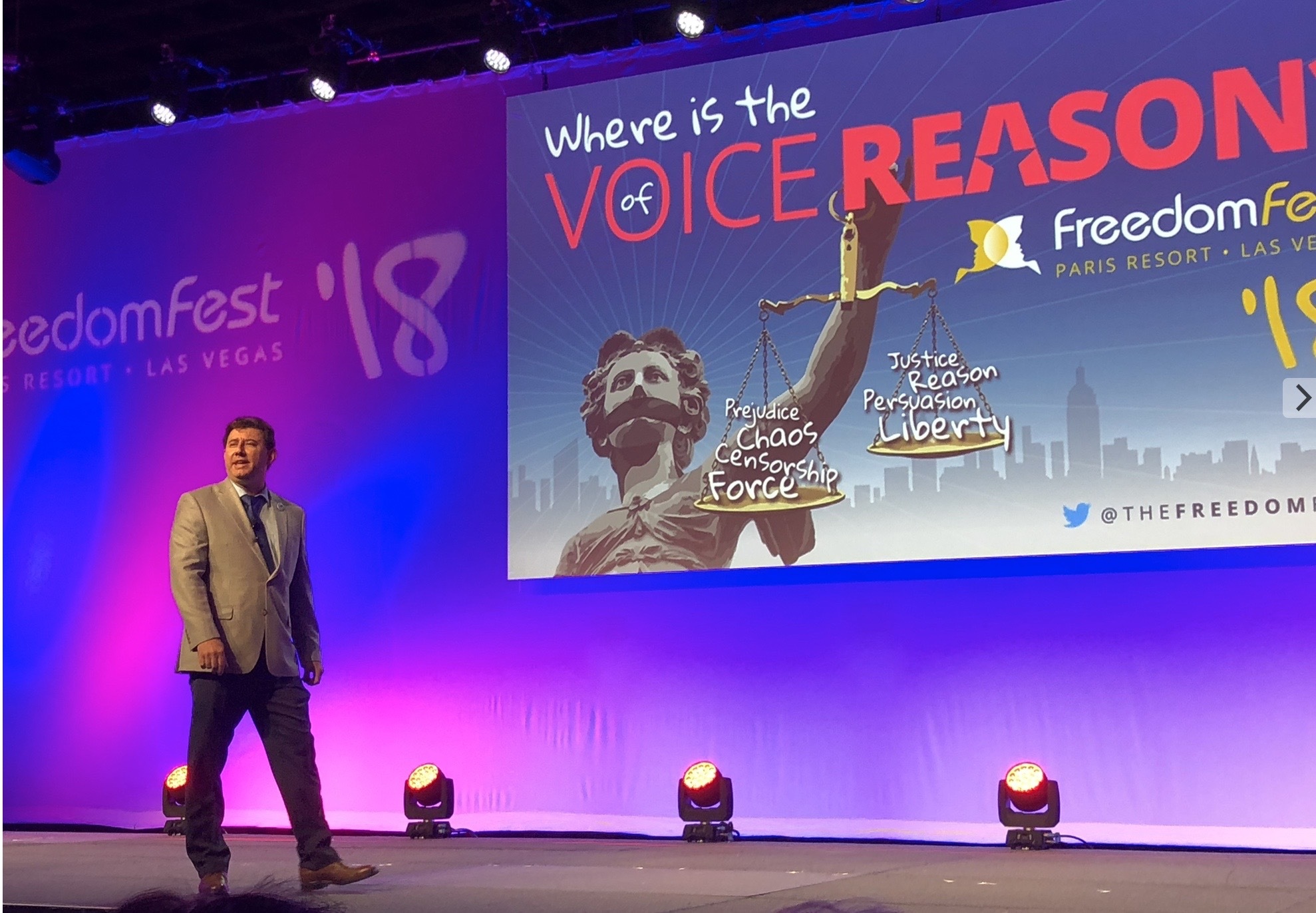 Judge Andrew Napolitano on Stage with CloudCoin's Sean Worthington