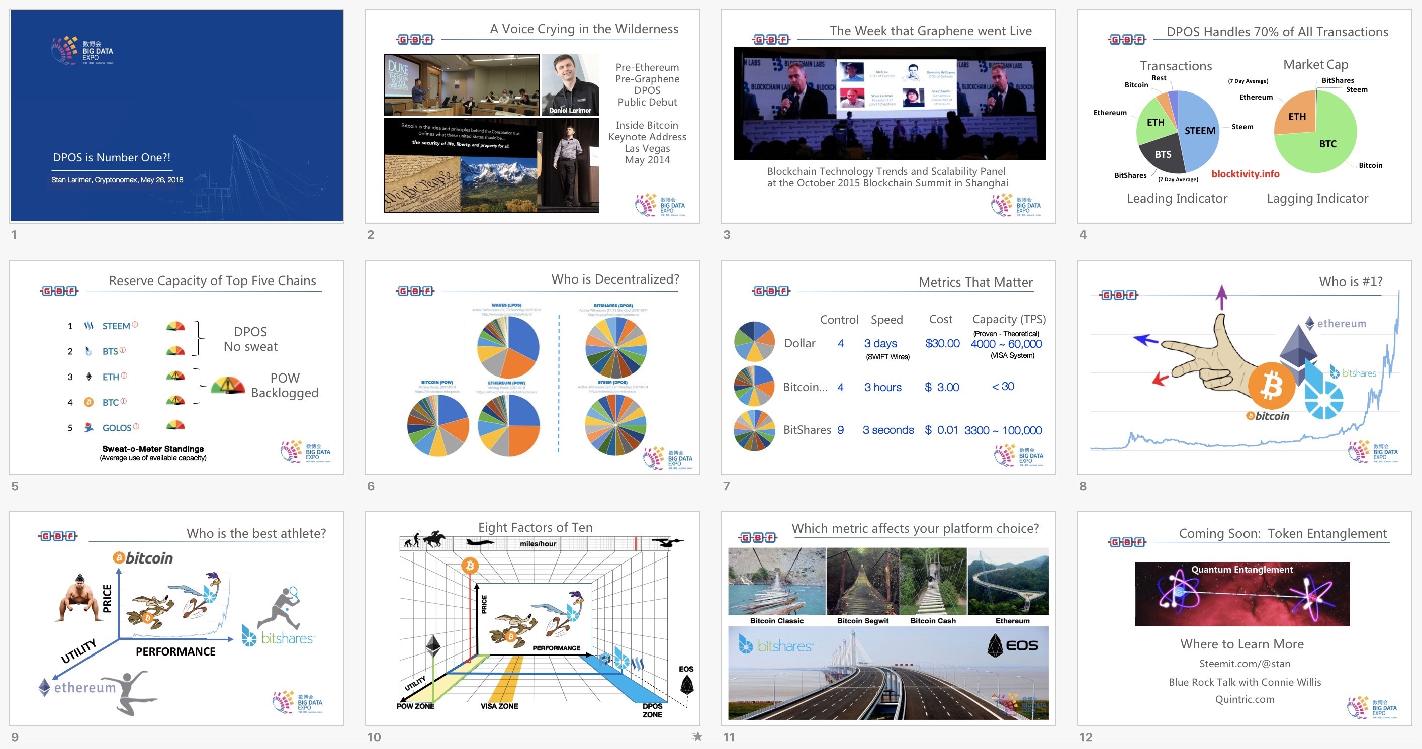 The main points of this presentation were brilliantly reconstructed by Michael Taggart from a very rough Chinese transcript in yesterday's post on Medium: Stan Larimer Discusses BitShares, Steem, EOS at China International Big Data Indurstry Expo 2018