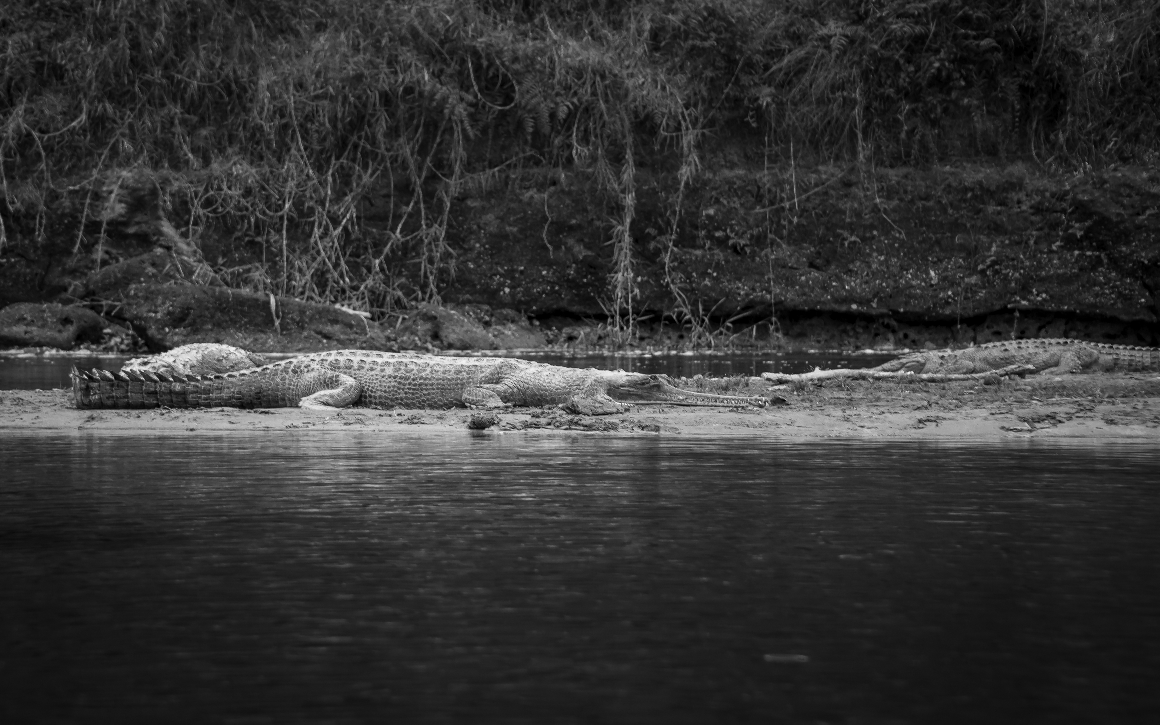 A big 'unsteemCreated with Sketch.philpotg (70)in Black and white • 2 days ago Hi all, A large freshwater crocodile basks in the sun on the banks of a river in Nepal's Chitwan National Park. CameraSony A6000 #blackandwhitephotography #travelphotography #photography #steemphotos