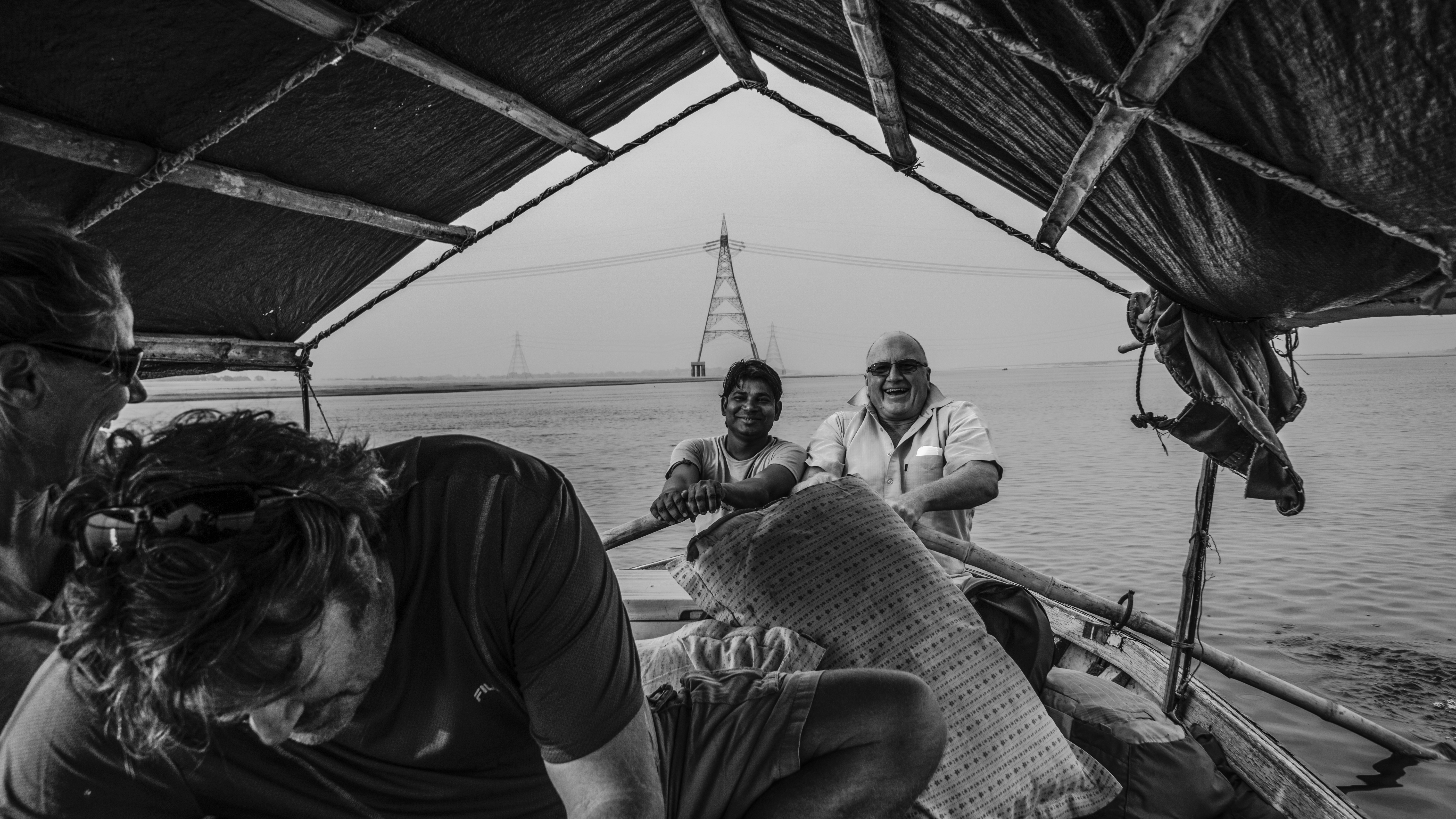 I gave our trusty rower a hand when rowing upstream on the Ganges River in northern India.
