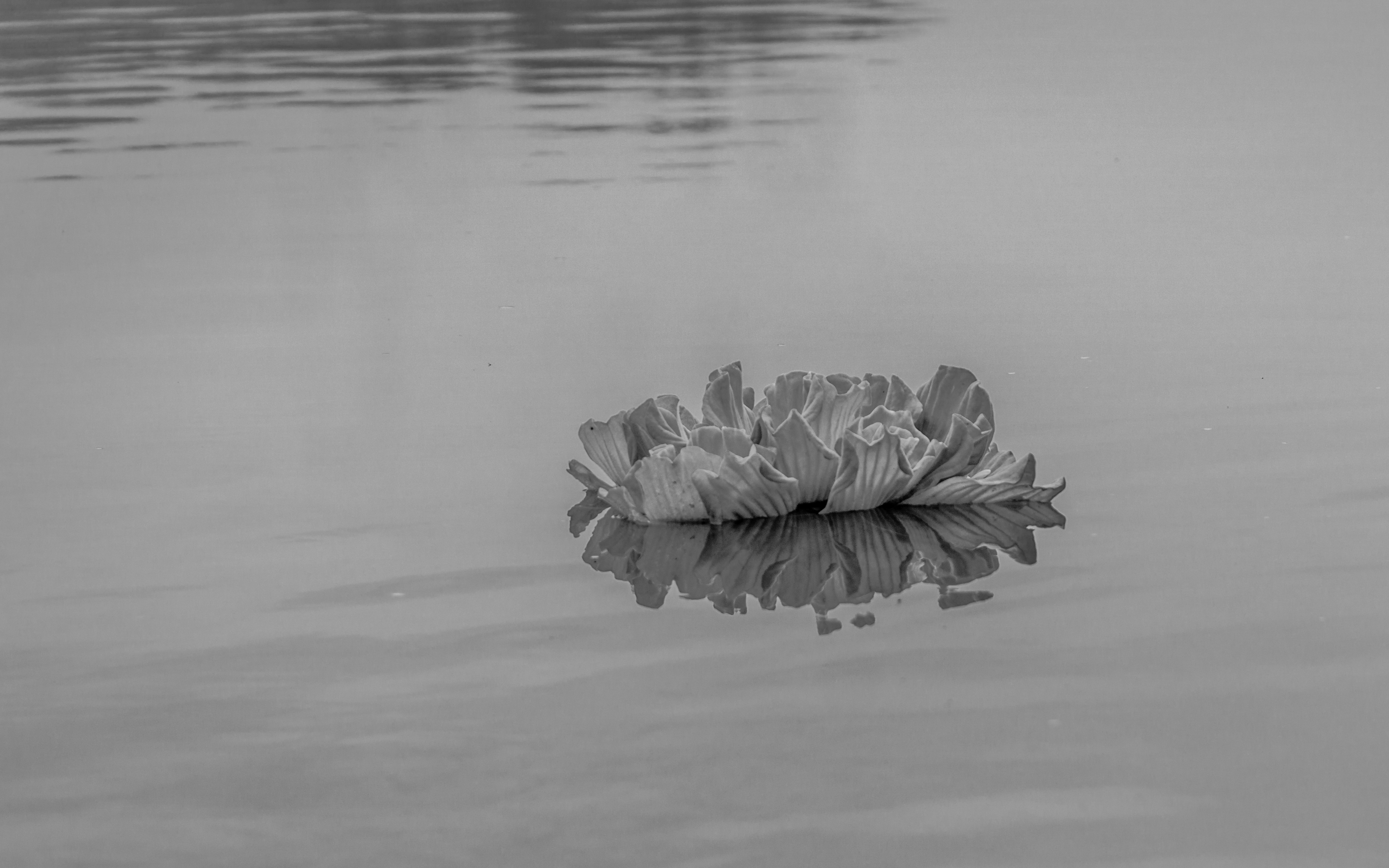 A water plant gently floats down the calm waters of a river in Nepal's Chitwan National Park.