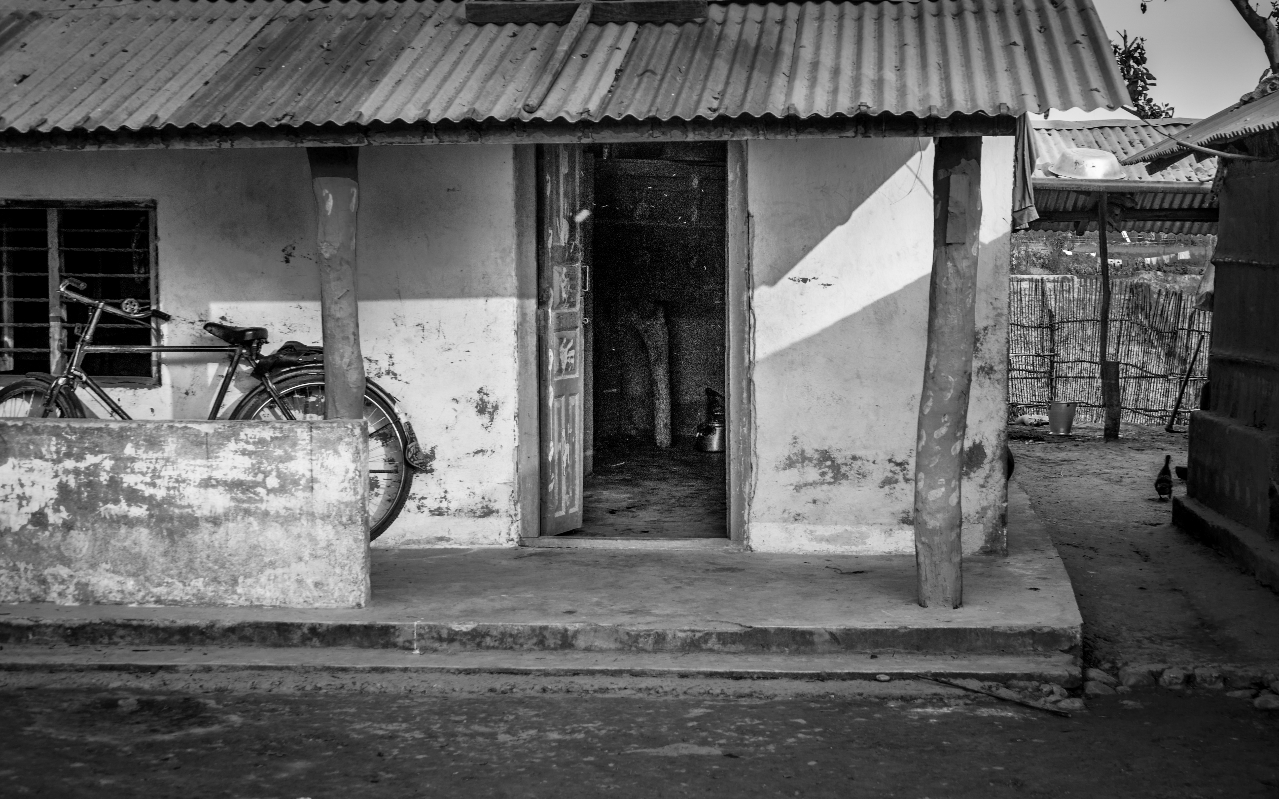 Humble dwellingphilpotg (70)in Black and white • 24 days ago Hi all, A small dwelling with a bicycle parked at the front door in a village on the edge of Chitwan National Park in Nepal. From my black and white Nepal series of photographs. CameraSony A6000 #blackandwhitephoyography #travelphotography #photography #steemphotos