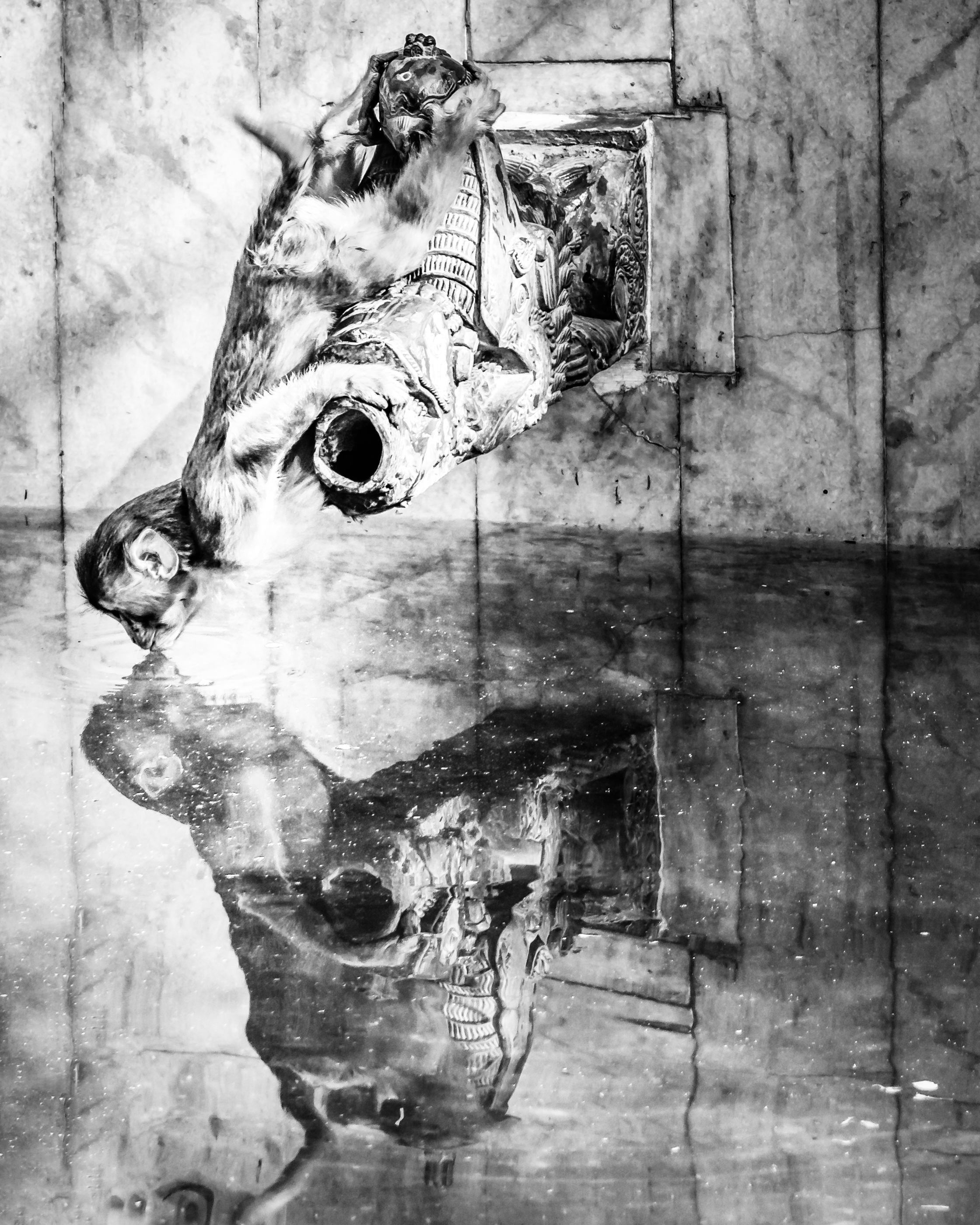 Monkey Business #2steemCreated with Sketch.philpotg (70)in Black and white • last month Hi all, Visited a temple near Katmandu where there were plenty of monkeys hanging around. This is a clever way to get a drink of water. CameraSony A6000 #blackandwhitephotography #travelphotography #photography #steemphotos