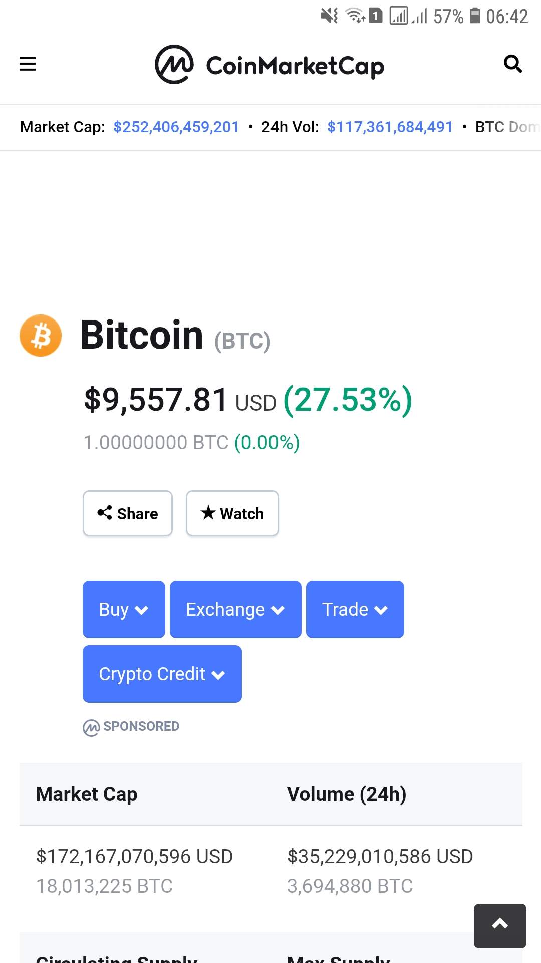 A big crash in bitcoin price in last week, Bitcoin price crashed to 7,400$* and within one day 27% change is seen and the price is rised to 9,500$.