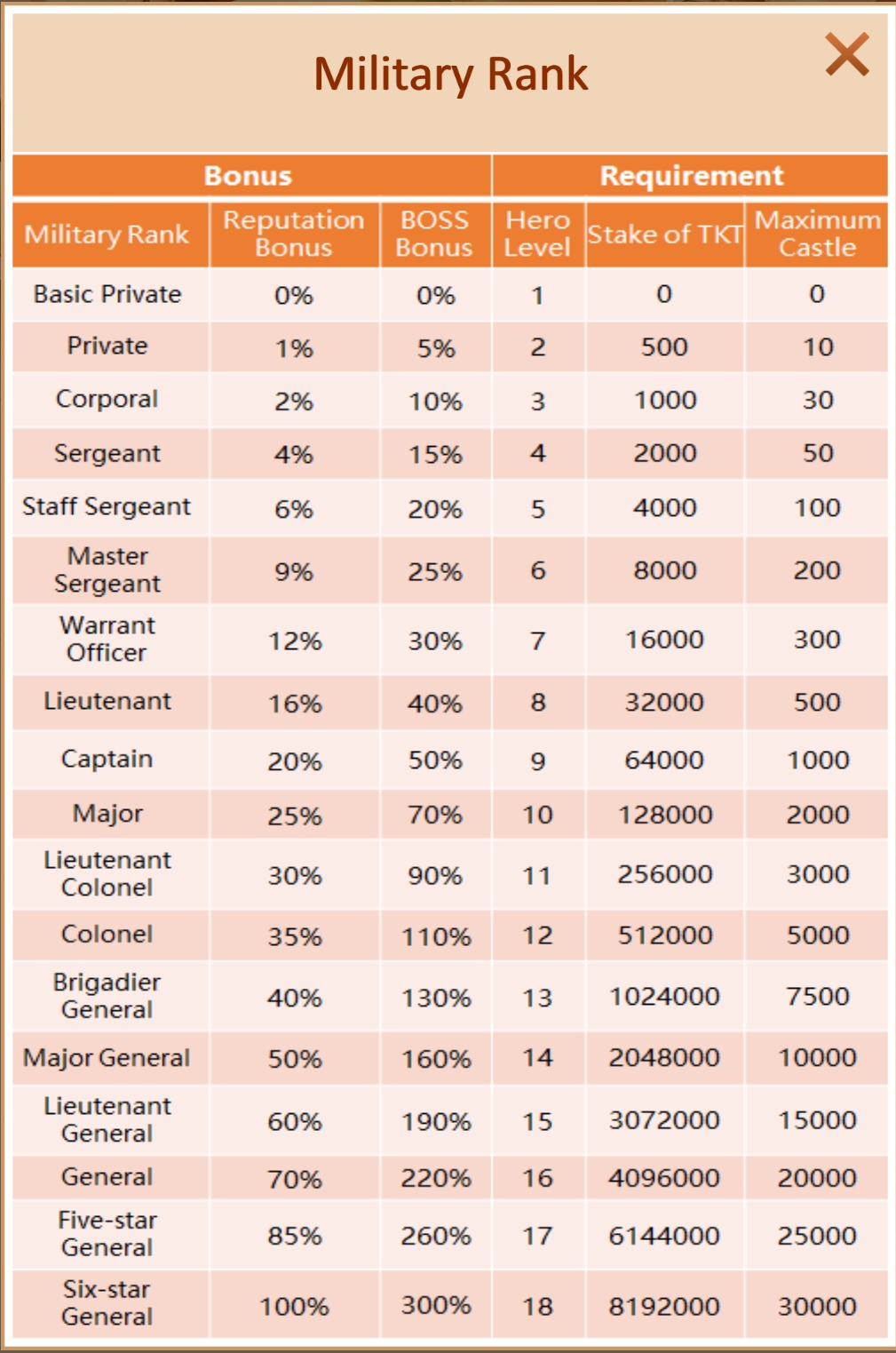 TKT Tokens are the reward currency of EOS Dynasty. You basically get them for every EOS you spend within the game, but you can also get free TKTs from ‘Mining’ or other activities. Essentially, you get 500 TKT per each 1 EOS spent in the in-game store (buying Tiger Runes, Gift Packs, etc) and 25 TKT per each 1 EOS spent on material or equipment in the marketplace.