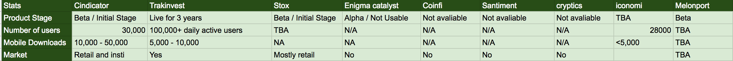 In above features comparison, Trakinvest clearly leads rest of the projects. With more than 100k daily active users and 3 years in markets with huge data and tons of features and partners. Trakinvest is one huge investment opportunity.