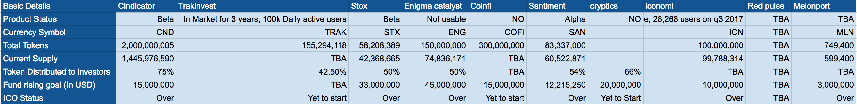 Lot of data to be updated to this, but cindicator’s ICO was one of the best run ICO. 75% distributed to investors. Its always good if higher percentage of tokens distributed to investors and if lower number of amount raised in ICO. I let you decide which is good.