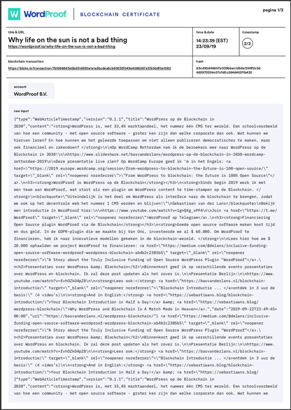 Wordproof.io also has a verifiable trust that allows visitors to see when last you edited your content, so they would be updated, thus making information got more accurate. Visitors can even verify what was changed.