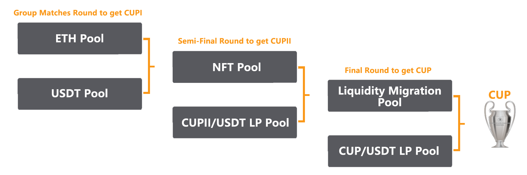 CUPII will be mined in the semifinals, only those who hold NFT assets issued by Cup.finance (exchanged through CUPI) can get the opportunity to mine CUPII in this round, to eliminate speculators and gather long-term consensus among our community.