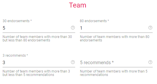 We see they have quite a few relevant skills above 80, so we put a 1 in 80 endorsements