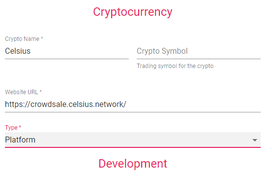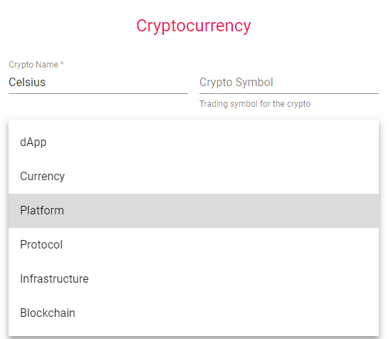 We do know the symbol (CEL), but you can also leave this blank, this is more important for live updates later on. They call themselves a financial platform so that’s the one we select