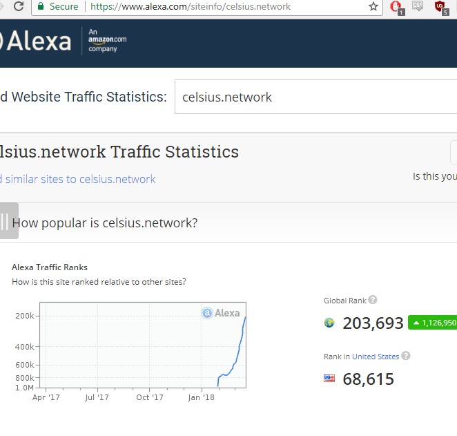 We head over to alexa.com/siteinfo and we search for celsius.network, we see they are 203693, so we input that