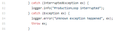 Good error handling, unknown exceptions are logged and thrown, this tells us these developers have definitely had production level experience and had to deal with things like kernel panics and out of memory errors, this is good to see.