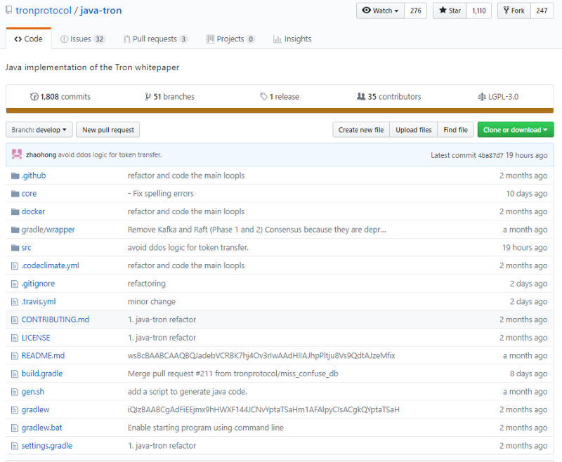 Active repo, always good to see, two primary projects wallet-cli and java-tron. We will be looking at java-tron