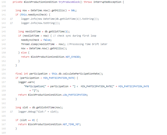 WitnessService.java code is good. I like the tryProduceBlock mechanism before block creation