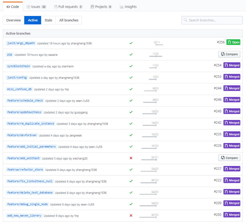 Branches look good, they avoid changing on the main stable repo until a branch is passed, this is good development structure.