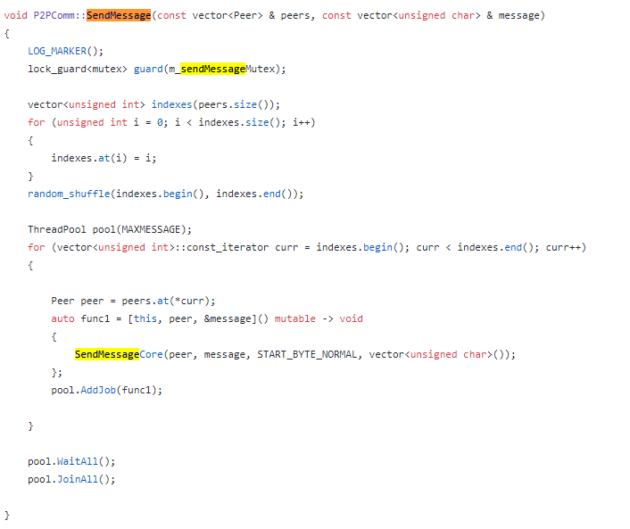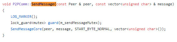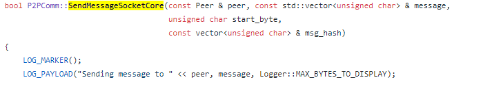 This is kind of a lot of unnecessary code to just do a random select on a few peers, but I’ll ignore that for now, let’s look at SendMessageCore