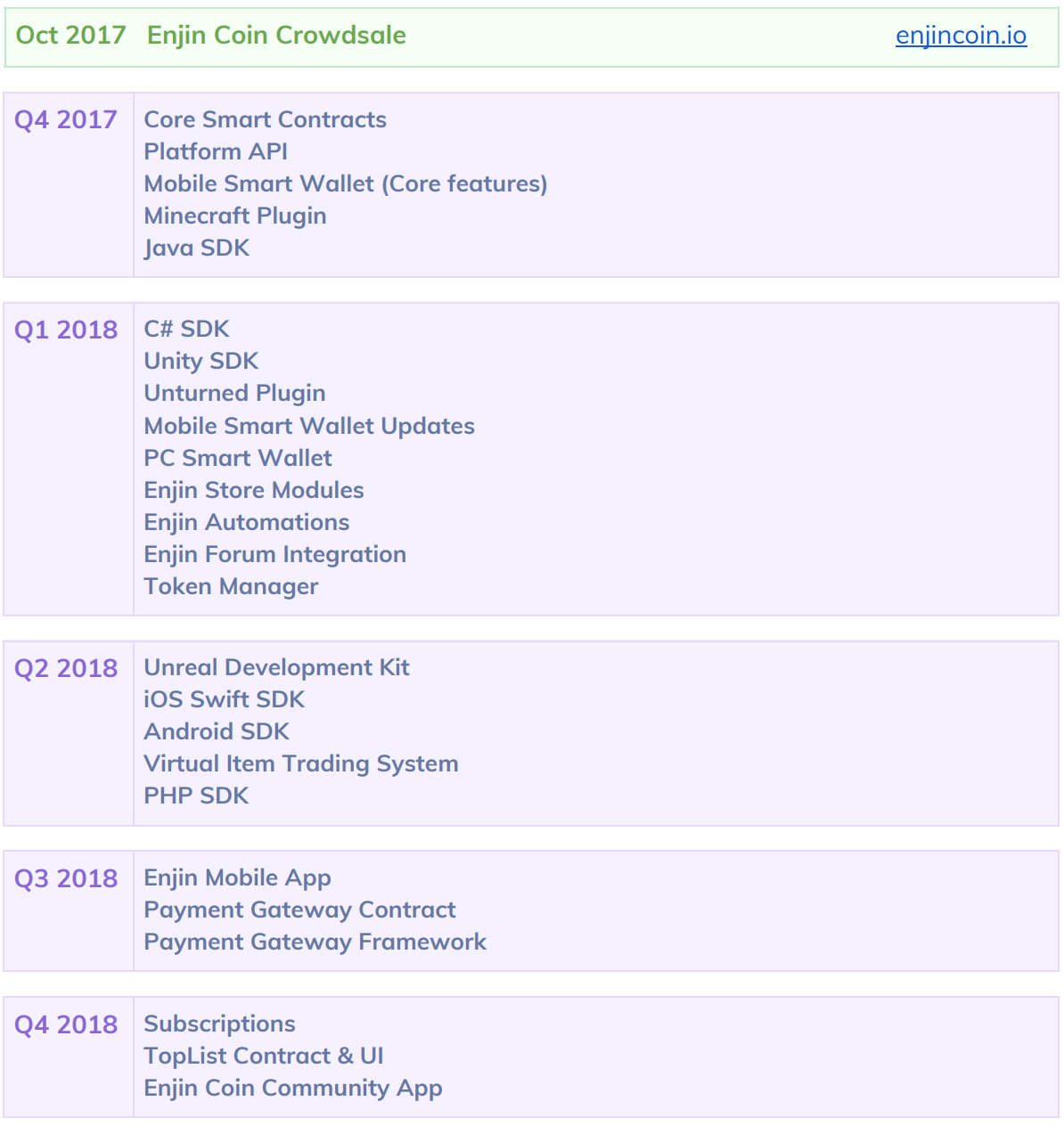 Enjin is building a network for the gaming community through their cryptocurrency token, ENJ, to connect gamers, developers, & content creators all around the world. This will be achieved through their open-source software development kits (SDKs), their mobile wallet, plugins, as well as access to their payment system.