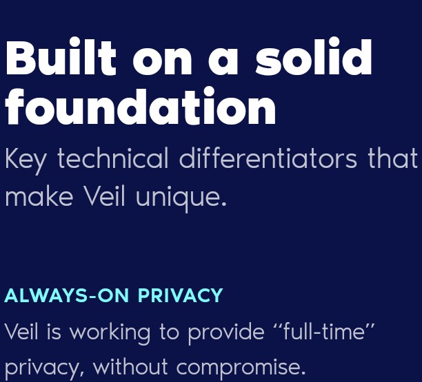 Veil project is a top notch. I sincerely do appreciate their efforts in bringing privacy to blockchain