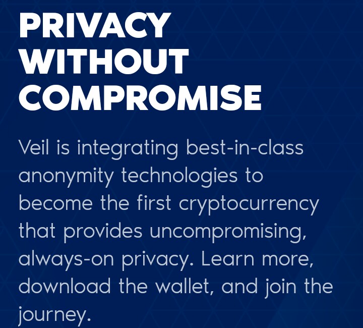 We all believe and love the words blockchain, cryptocurrency, decentralization, etc but the challenges involved is actually leading to double mind, users are not comfortable and always scared when it comes to blockchain activities. The causation of this menace isn't far fetched. The privacy of users are compromised. Imagine batting outside(public) only a bad man does not. A reasonable person will never attempt such act. So many project came with sweet thoughts and assurances of getting user privacy solved but ended up Turing into stoned they poured water( no change) its of no use to worry anymore. A project well redefined and constructed to meet demands of users is here. A solution to our privacy is here. A project to revamp and bring back lost trust is here. All thanks to VEIL and the team involved.