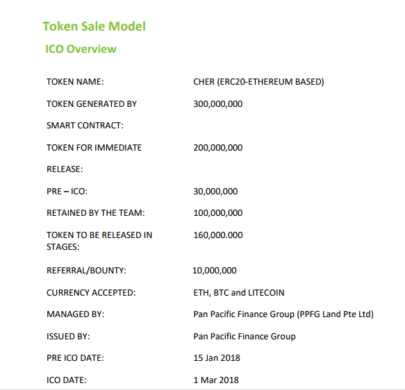 CHER adalah proyek hijau yang layak secara ekonomi sekaligus menciptakan eco city dengan lingkungan nol karbon,The Eco city dibangun untuk hidup di lingkungan,memanfaatkan material terdekat dan vitalitas lingkungan,aliran udara dan air pada siang hari,angin dan hujan mendapatkan ke keuntungan optimal.Eco city pertama di dunia yang dibangun di atas mata uang kripto,di mana pembayaran dilakukan dalam cryptocurrency.Investor akan dapat membayar token langsung dengan akomodasi dan layanan lainnya di wilayah Eco city.