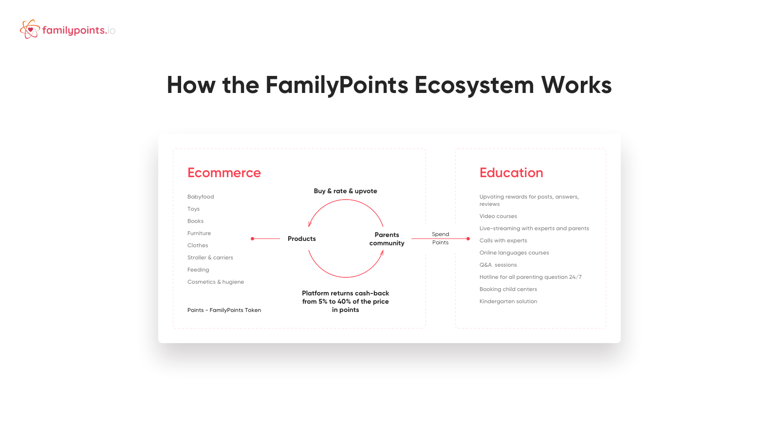 The FamilyPoints platform aims to reinvent the parenting industry and transform marketinefficiencies into advantages for parents.FamilyPoints is being created to tackle multiple problems in the traditional maternity and baby industry as it exists today.The entire ecosystem is built around three core values which fundamentally undermine the problems parents face today.