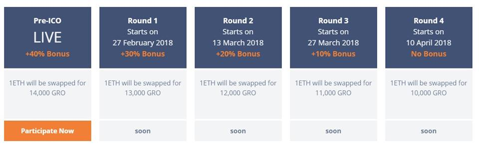 1ETH = 10,000 GRO + 4,000 GRO bonus