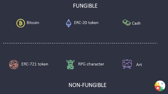 Pour rappel, voici la différence entre un Non Fungible Token et un Fungible Token :