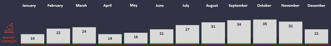 Voici l'évolution par mois du nombre de smart contract qui ont été créés au cours de l'année :