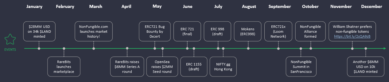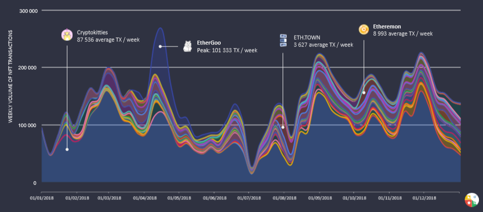 Il y a quelques mois sortait le rapport de Nonfungible.com de 38 pages sur les évolutions du monde des NFT au cours de l’année 2018. Comme je n'ai pas vu d'article français en traiter, je voulais vous le présenter en trois axes : les évolutions technologiques, l'aspect financier et les projets qui ont marquée cette année.