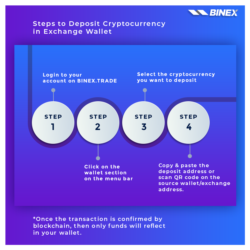 We’ve introduced a simple 4-step process to deposit any of the above cryptocurrencies in your exchange wallet: