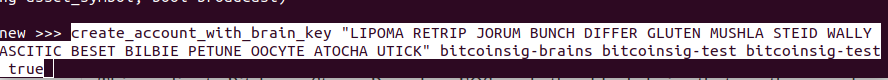 Syntax for creating an account with a brain key. We need the 16 words, an account name, and a faucet