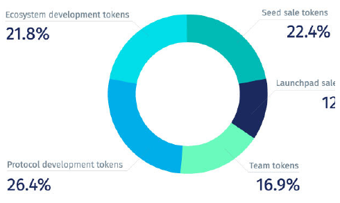 following manner: 22.4% went to the seed sale tokens, 12.5% to the launchpad sale,