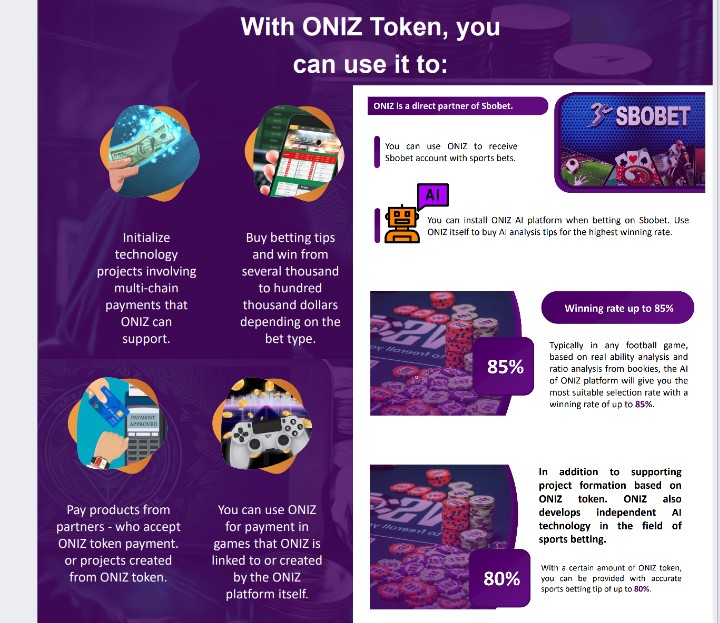 To make purchases of Oniz products by members: Online Casinos, sports betting, money making etc.
