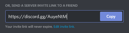注意:リンク下にある"Edit invite link"から"never expire"を設定してください。