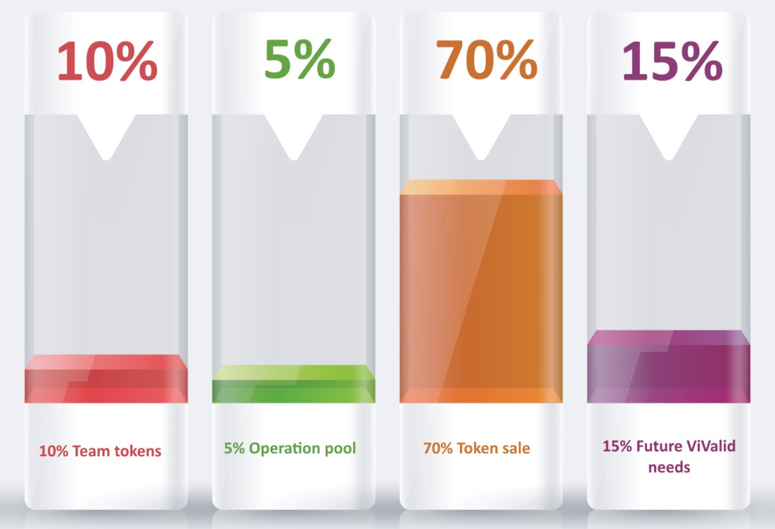 ViValid 개발이 끝날 때까지 2 년 동안 가동 풀 (5 %)의 유동성에 대한 토큰이 동결됩니다.