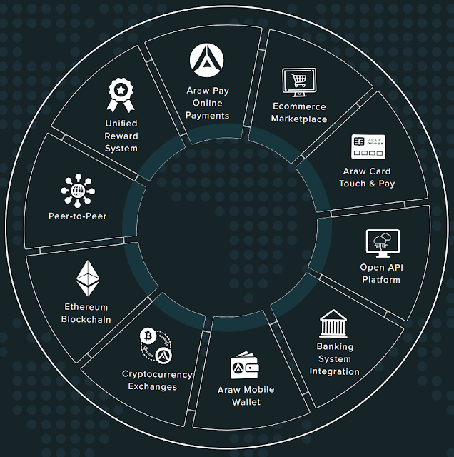 ARAW token is the mind offspring of ARAW UK Ltd. The platform's local token and money known as ARAW Token depends on blockchain innovation and smart contract to give a decentralized payment ecosystem to every one of its supporters. They are ready to target in excess of one channels to expand the acknowledgment of the blockchain innovation in our everyday on the web and in-store shopping. The platform will also compensate steadfast users and clients of the platform with the ARAW tokens which will fill in as promoting apparatus for them as this reward framework will keep old clients and draw the consideration of new clients and furthermore bring a reasonable play ground among payment and online business enterprises. It is important to state that ARAW token is a combination of rewards framework, means of promotion for the retail business , payment and online business industry.