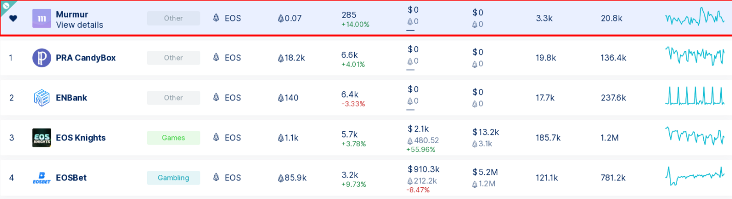 Top dapp in the rank list:
