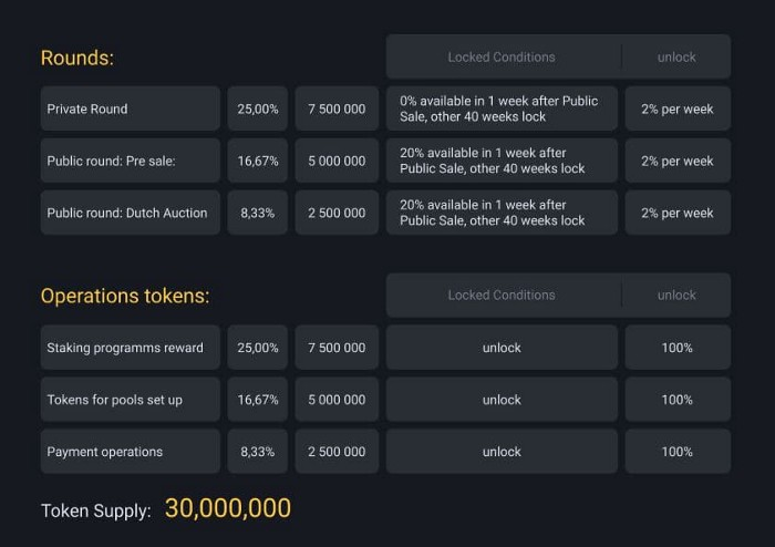 Token fоr pool set up: 16.67% 5,000,000