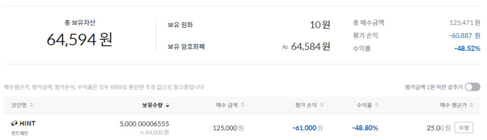 제 5000 HINT는 수익률 -48.52%라는 처참한 결과로 돌아왔습니다.